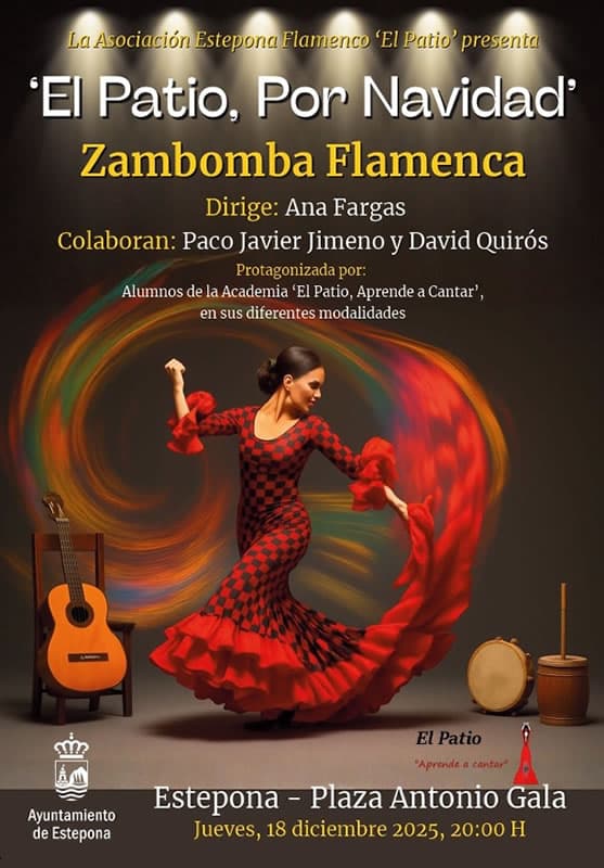 The show ‘El Patio, for Christmas’ will be presented by the Estepona Flamenco Association ‘El Patio’ on Thursday, December 18 at 8:00 p.m. at the Plaza Antonio Gala. Led by the singer Ana Fargas, the concert will feature students from the Academy ‘El Patio, Learn to Sing’ showcasing classic carols with modern and flamenco styles….