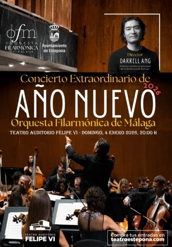 The cultural programming for the start of 2026 in Estepona will feature the traditional Extraordinary New Year’s Concert, presented by the Orquesta Filarmónica de Málaga (OFM) at the Felipe VI Theater Auditorium. The concert will be conducted by the Singaporean maestro Darrell Ang, who is the artistic director and principal conductor of the Sichuan Symphony….