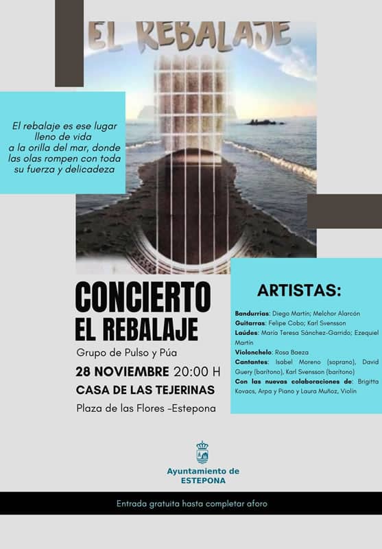 On Friday, November 28, at 8:00 pm, the Casa de Las Tejerinas will host a free concert by the pulse and plectrum group ‘El Rebalaje’. The program includes a variety of musical styles such as classical music, modern music, soundtracks, Neapolitan, zarzuela, and more. The concert will feature the world premiere of the piece ‘Andagietto’…