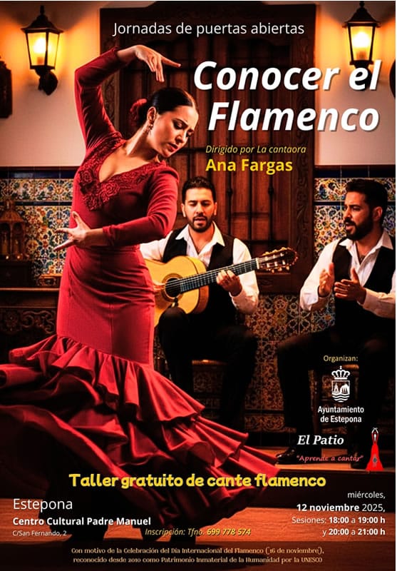 The International Day of Flamenco will be celebrated on November 16 to honor this cultural heritage. In anticipation of this, the City Council of Estepona and the Estepona Flamenco Association ‘El Patio’ are organizing an Open Day event called ‘Knowing Flamenco’ at the Padre Manuel Cultural Center on November 12. This event includes a free…